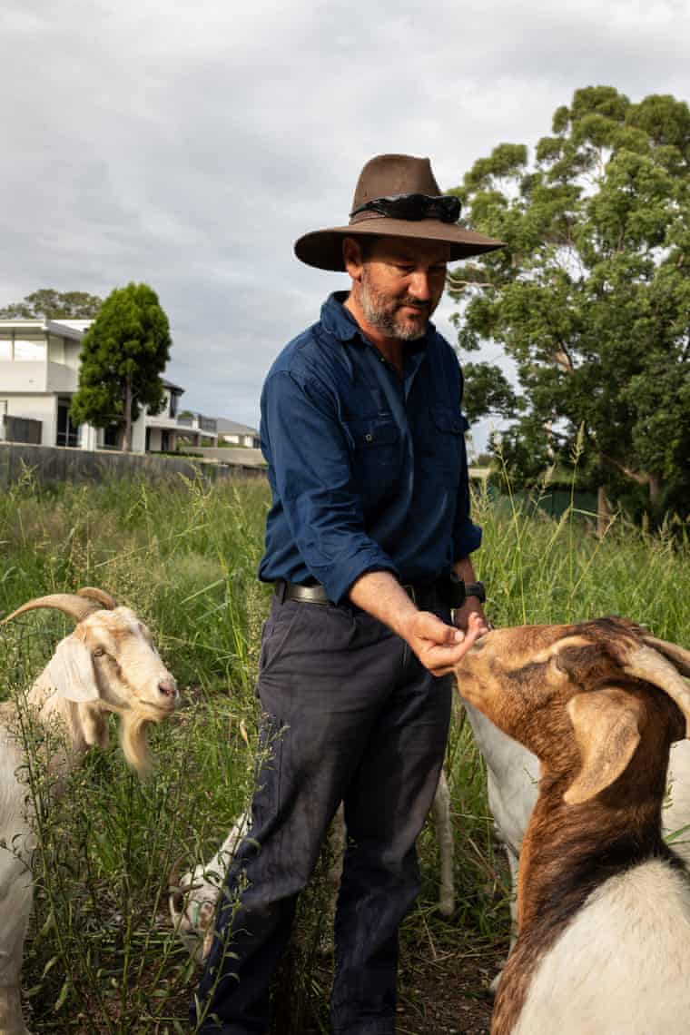 Michael Blewitt with some of his goats at Strathfield girls high school, where the goats are being used to manage weed growth. Photograph: David Maurice Smith/Oculi